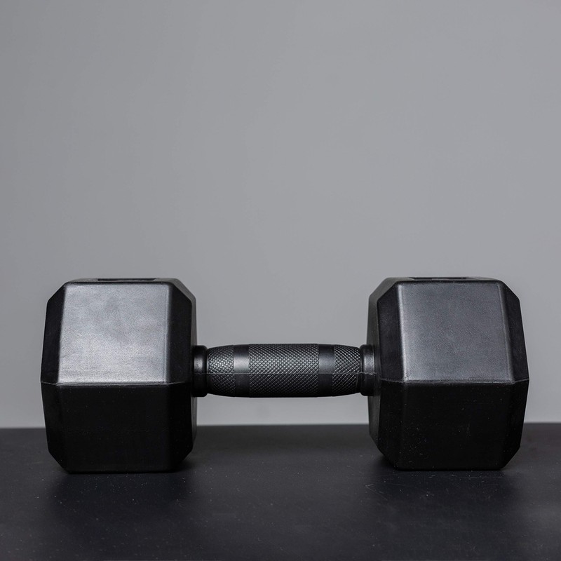 - DESIGNED FOR PERFORMANCE: The solid steel heads are friction-welded to the handles to for a permanent bond, then rubber-coated with a durable, high-grip rubber. The steel construction makes them up to 30% smaller than standard hex dumbbells made from cast iron. They are more stable and easier to handle, especially when doing heavy presses, snatches, and jerks. The compact size takes up less space in your gym and makes storage easier.