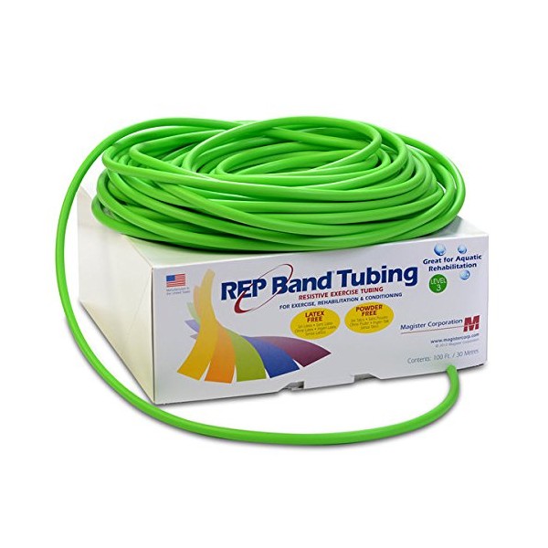REP Band Latex Free Tubing Like REP Band Resistive Exercise Bands, REP Band Resistive Exercise Tubing is latex-free, odor-free, and powder free. The same benefits for resistive exercise are attainable with the same five levels of resistance for customizing a resistance exercise program. Five levels of progressive resistance. No latex. No powder. No odor. Resistance level options. Sold each. Quantity: 1 Size: 25ft (7.5m) or 100ft (30m) Color: Peach - Level 1 Orange - Level 2 Green - Level 3 Blue - Level 4 Plum - Level 5 Material: No latex. No powder. No odor. Made In: USA Brand: REP Band Manufacturer: Fabrication Enterprises