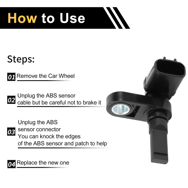 - Item Installation:Easy Installation. Remove the car wheel, unplug the ABS sensor and sensor connector, then replace the new abs sensor.