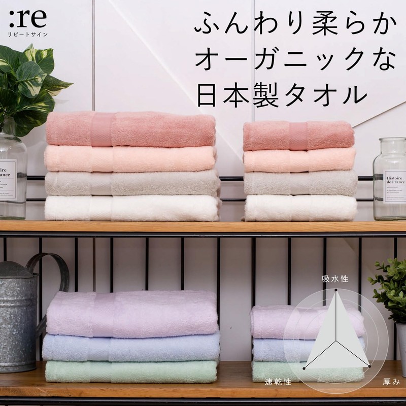 Repeat Sign (:re) Urara Face Towel, 13.4 x 31.5 inches (34 x 80 cm), Set of 2, Water Absorbent, Thick, Fluffy, 100% Cotton, Made in Japan, Senshu