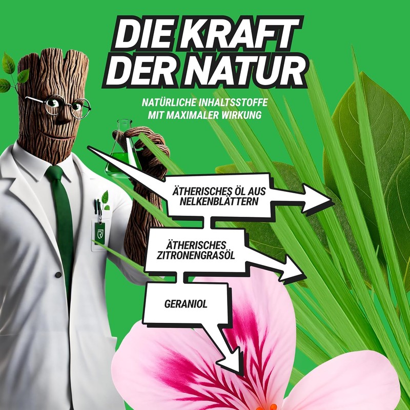 NATÜRLICHER SCHUTZ – IDEAL FÜR ANTI-WESPEN OUTDOOR ANWENDUNGEN - Dank hochwertiger, natürlicher Inhaltsstoffe wie Zitronengras, Nelken und Geraniol ist unser Spray eine umweltfreundliche Alternative zur herkömmlichen Wespenfalle. Vielseitig einsetzbar – ob auf dem Balkon, im Garten oder beim Camping.