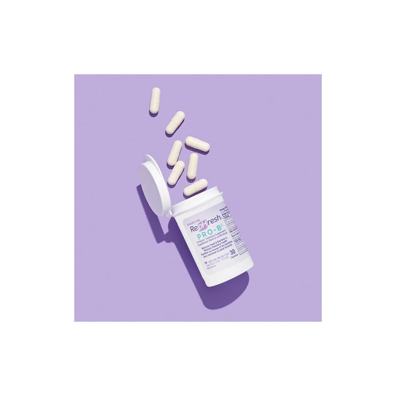 RepHresh Pro-B is a feminine probiotic supplement taken orally once a day to balance yeast and bacteria.With 5 billion beneficial bacteria per serving at time of manufacture, RepHresh Pro-B Feminine Probiotic Supplement contains patented and clinically tested strains of lactobacillus: L. rhamnosus (GR-1) and L. reuteri (RC-14). This proprietary probiotic blend balances yeast and bacteria to maintain feminine health.