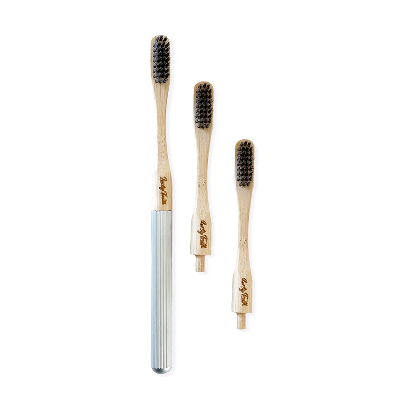 - * REUSE. REPLACE. RESTORE. RECOMMENDED BY DENTISTS - Lucky Teeth’s biodegradable toothbrushes are gentle for your gums, and clean like plastic toothbrushes. Made from renewable bamboo. With an Aluminum reusable handle, and 3 replaceable toothbrush heads. Use each head for 3 months, just like any other toothbrush. Head snaps off: Very easy to swap when the time is right. Bamboo heads can be composted after bristles have been removed with pliers.