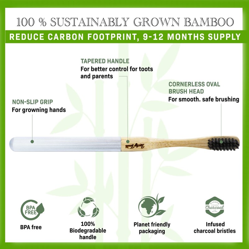 - * NATURAL AND ECO FRIENDLY- Our heads are made with 100% sustainably grown bamboo that is biodegradable. Soft BPA free bristles made of Nylon 6, verified to be free from the toxic BPA, is durable and clean. Soft bristles maximize cleaning effectiveness, taking care of your precious enamel, and are gentle with your gums.