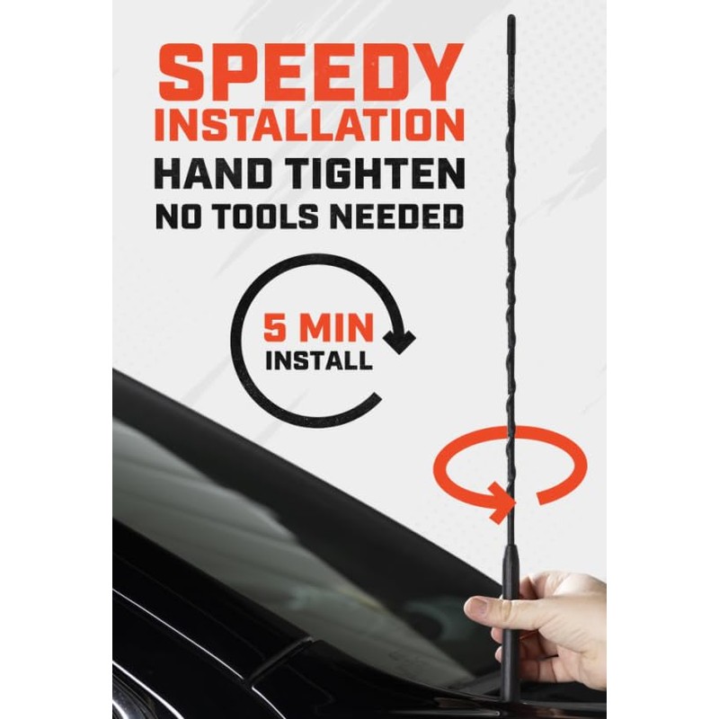 • CAR WASH SAFE – Car washes are grave yards for antennas! Just time before long factory antennas bend and snap! No worries, TheCatsPajamas mixture of shortened length and flexibility over the factory rigid steel antenna, will give you the peace of mind in touch car washes. Its strength is Tried, Tested and Proven. Superb Reception, New Strength Standards!!!