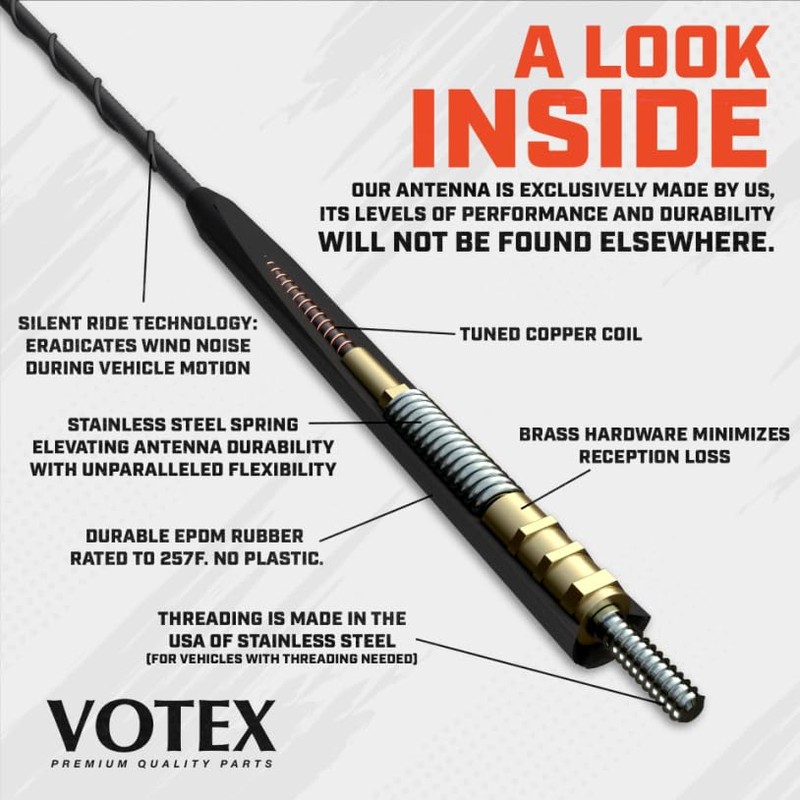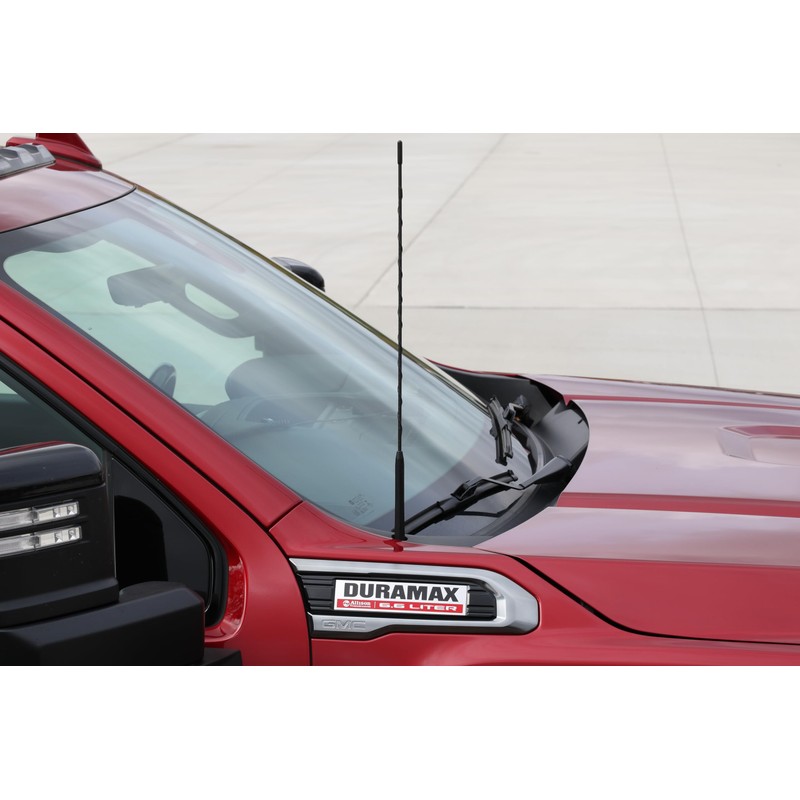 Our best reception short 6 ¾” antenna now has a bigger brother, the 23”. This antenna is great for those who will sacrifice antenna shortness for a better reception gain. One must note that there is a surplus of short antenna options available but none of them provide anything but frustration! Our experience with any and all short antennas are that they look cool but you lose close to all radio functionality. So this set us out on a mission, to design a short antenna that actually performs. Well, we are EXCITED to announce that we have over exceeded our goals and now offer a short antenna that will perform closer to the factory antenna than ever before!