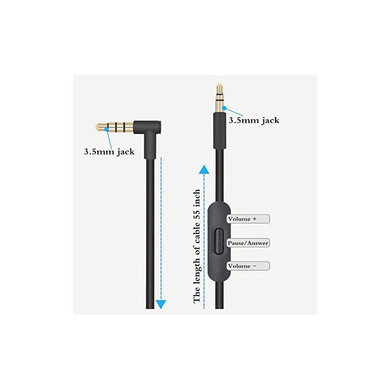 Replacement Audio Cable Wire for Beats Solo 2 Solo 3 Studio Studio 3.0 3 Detox (Black Black)