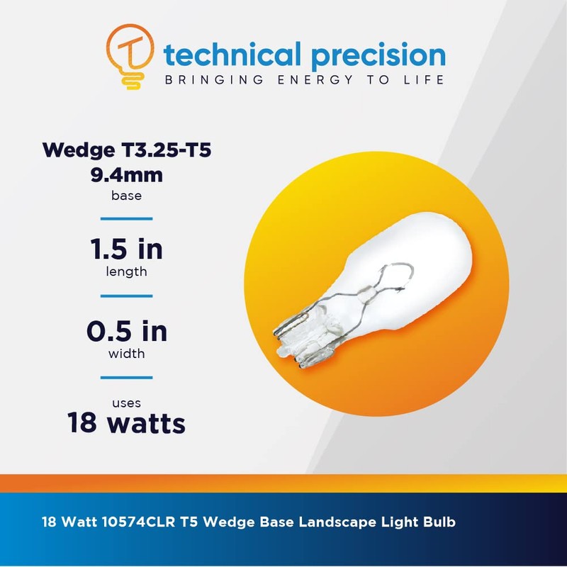 Technical Precision - Replacement Bulbs for Kichler Lighting 10574CLR by Technical Precision - 18W 12V Xenon Bulb - T5 Wedge Base Landscape Light Bulbs - 2800K Warm White - 10 Pack