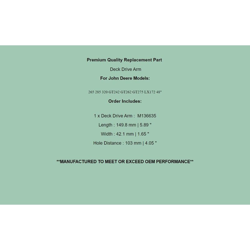 Replacement Deck Drive Arm For John Deere 265 285 320 GT242 GT262 GT275 LX172 48"