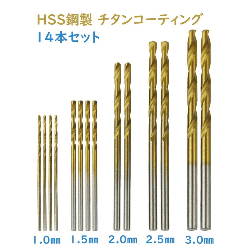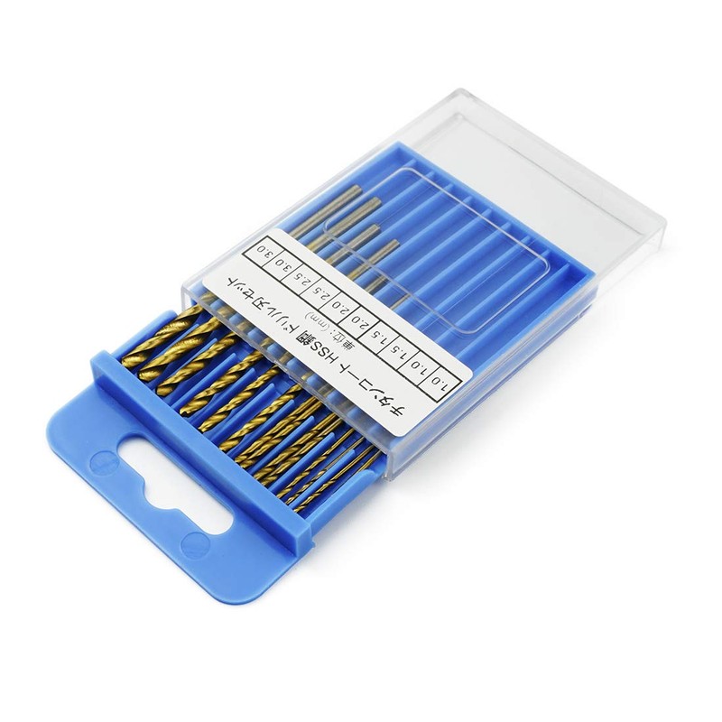 Replacement Drill Blade for Pin Vices, HSS Steel, Titanium Coating 0.04 - 0.1 inches (1 - 2.5 mm), Storage Case Included (14 Pieces)