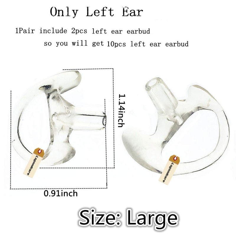 Replacement Ear Mold Earbuds Clear, Lsgoodcare Soft Silicone Insert Earmold Ear Bud Left Ear Piece Large Size for 2 Way Radio Acoustic Coil Tube, Walkie Talkie Earmould 5 Pairs