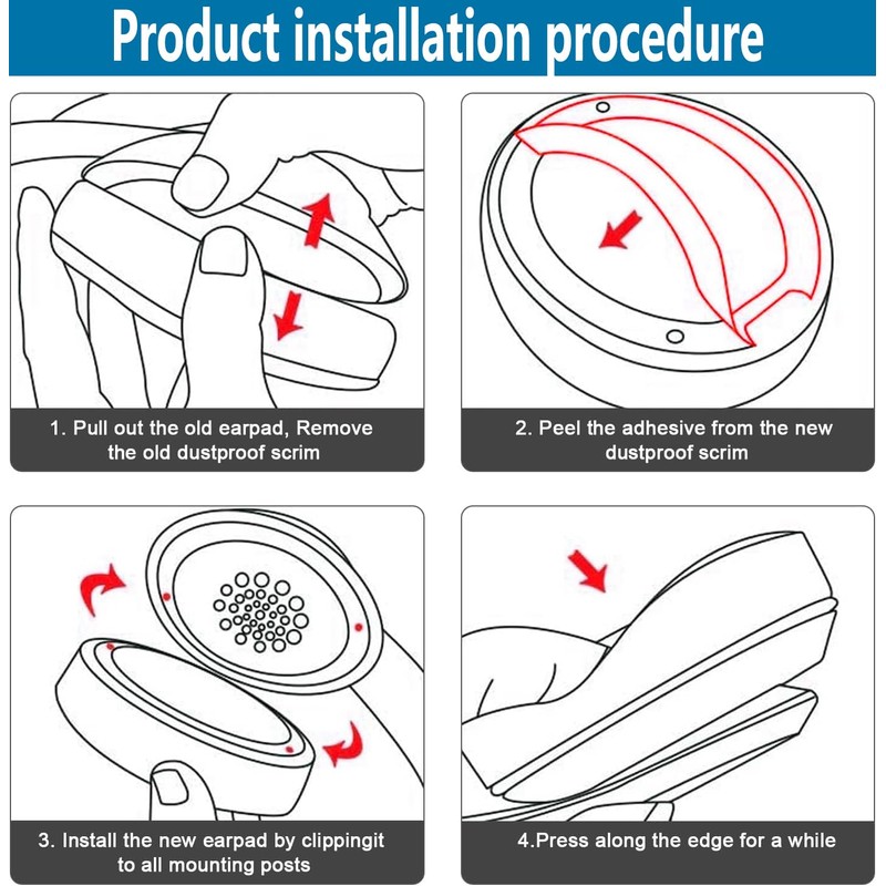 Note: Please remove any glue from the earphones before attaching the new earpads.