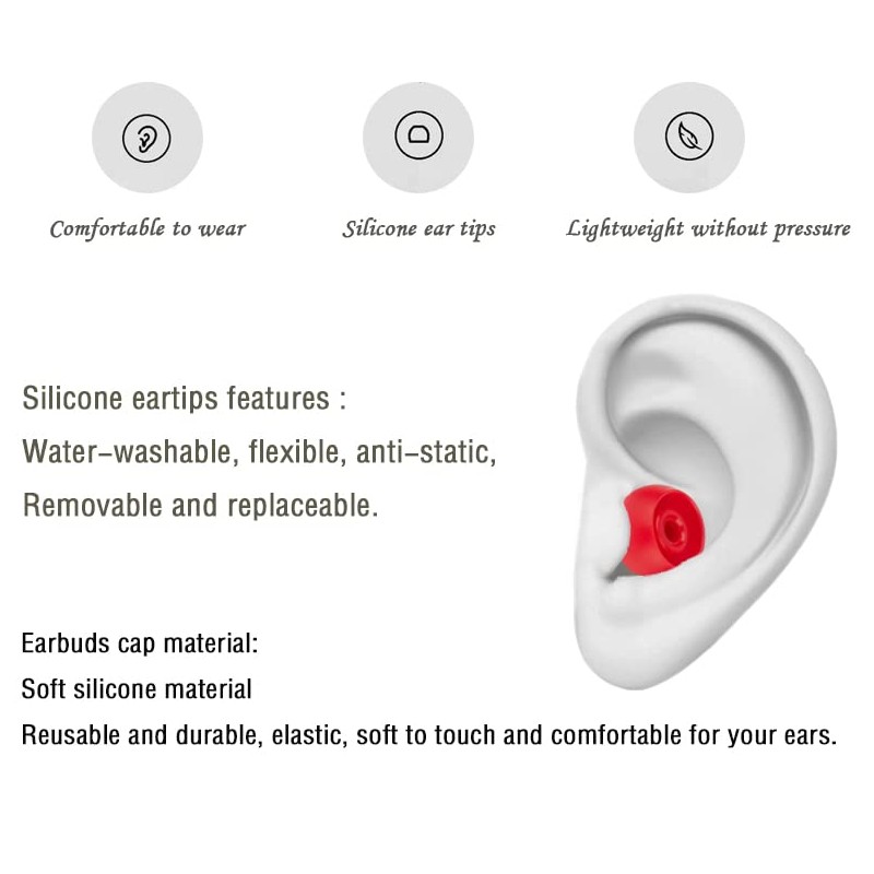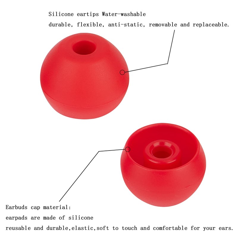 • 2.Red Earbuds cap material:Soft silicone material, reusable and durable, elastic, soft to touch and comfortable for your ears.