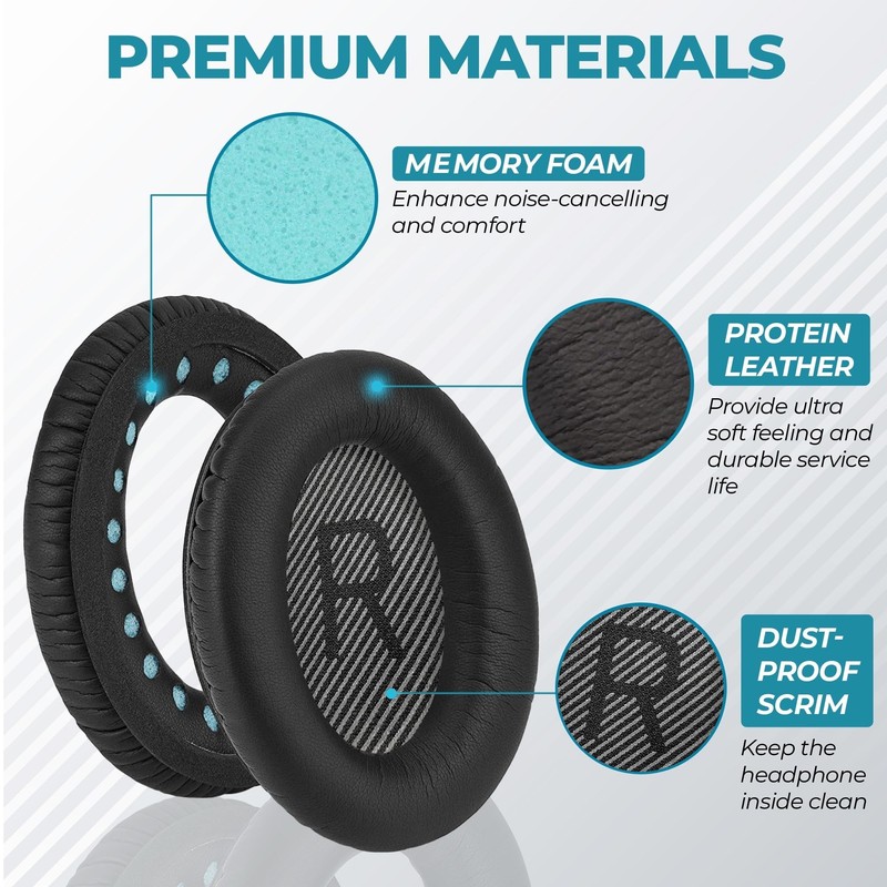 - đ§ăPREMIUM SOFT MATERIALăOur replacement ear pads for Bose headphones are made of Premium Soft protein leather and thick memory foam which will bring a comfortable wearing experience, block out external noise and provide superior audio.