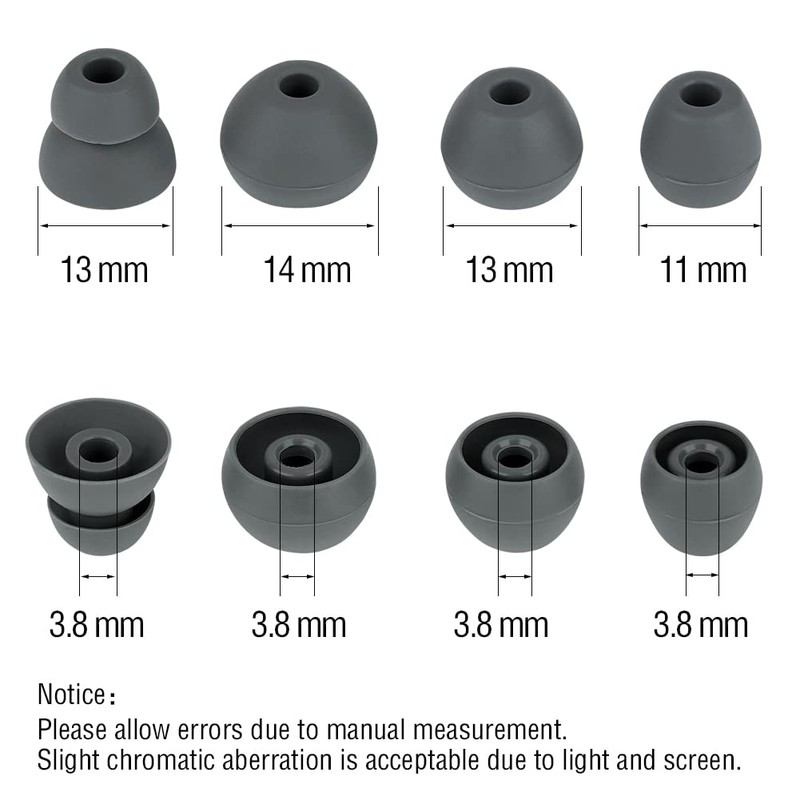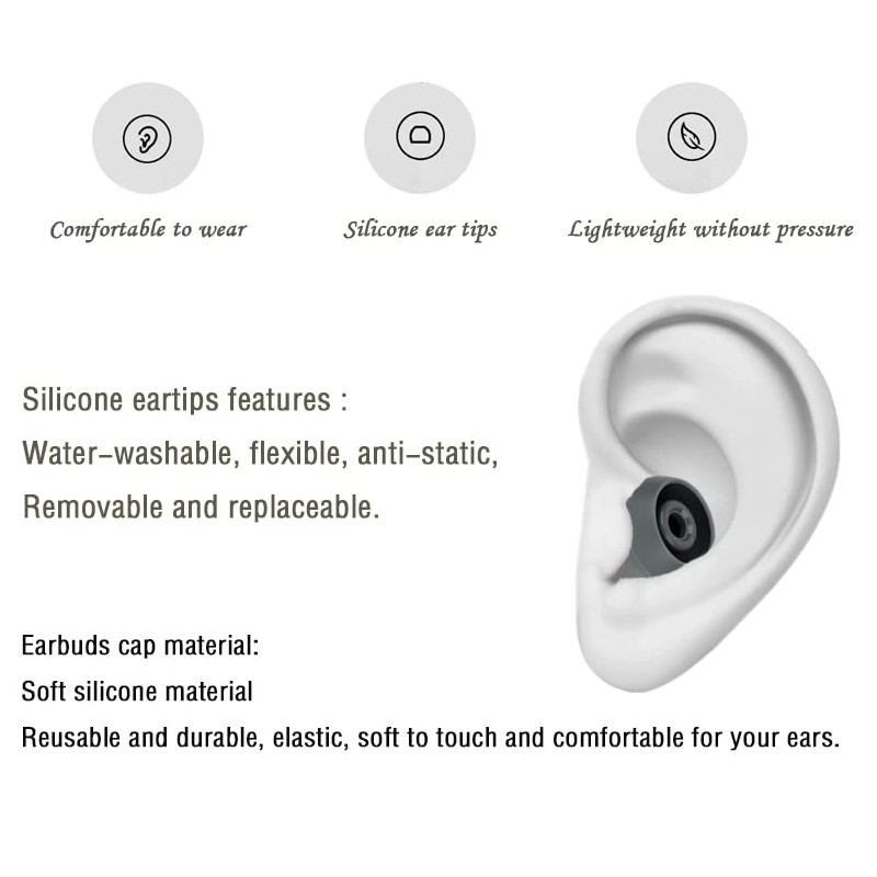 • 2.Dark Grey Earbuds cap material:Soft silicone material, reusable and durable, elastic, soft to touch and comfortable for your ears.