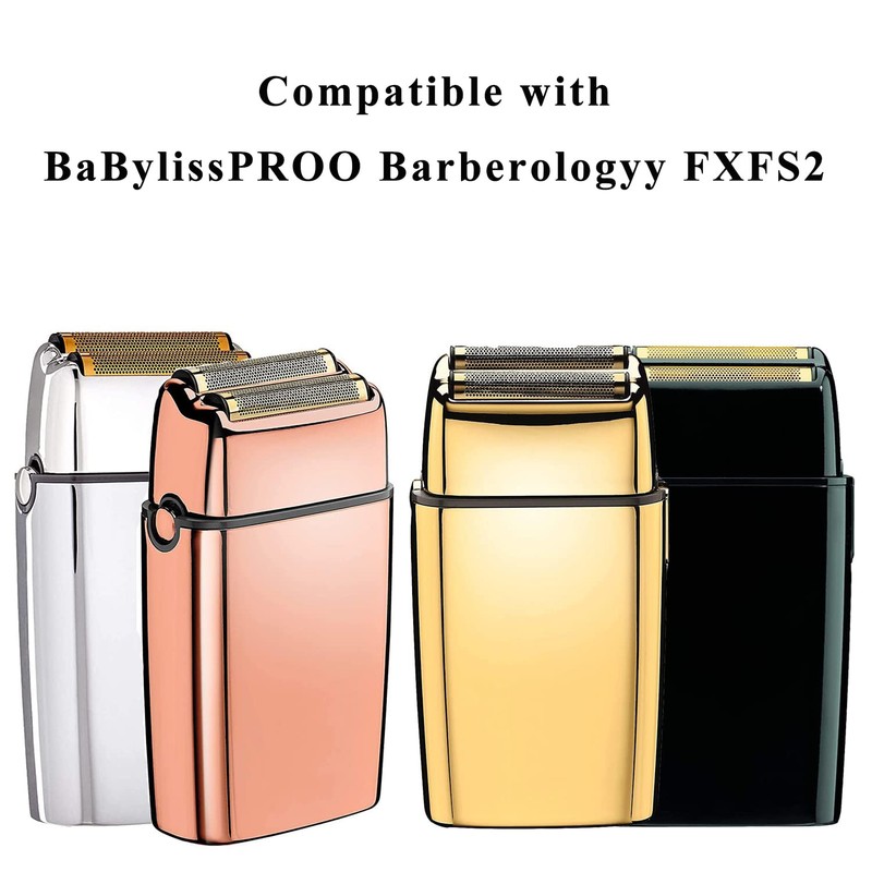 Replacement Foil and Cutter Compatible with Bab-yli-ss PRO Barbe-rology Double Foil Shaver FXFS2, Replacement Shaving Part Shaving Head Compatible with Bab-yli-sspro Foil Shaver, Gold (Pack of 2)
