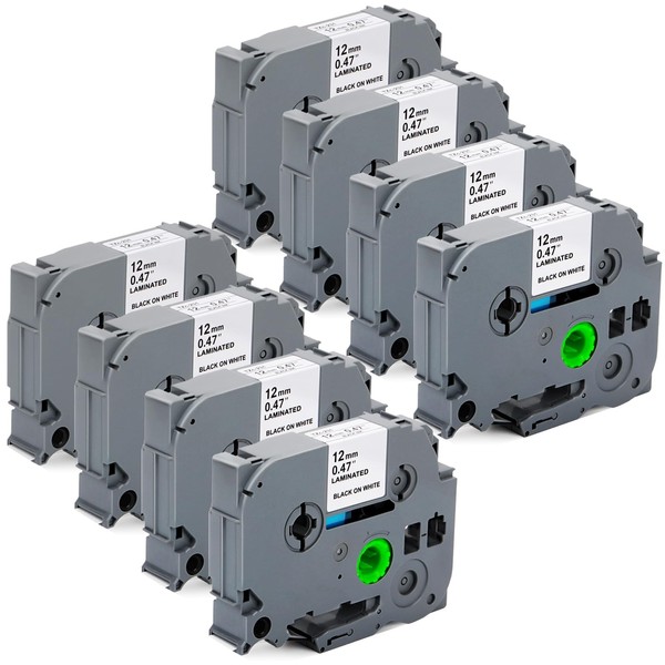 Replacement for Brother Label Maker Tape, P-Touch Label Tape, Tz 231 Tape 12mm 0.47 Laminated Black on White, Compatible with Brother PT-D210 H110 D220 D400 D410 D600, 8-Pack