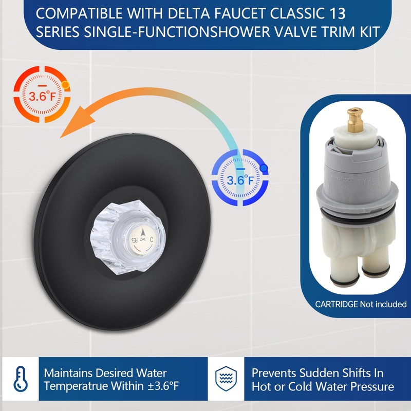 Replacement for Delta T13022 Shower Valve Trim, Shower Trim Kit for Classic 13 Series Single-Function, Compatible with Delta Monitor 13 Series Valve (Matte Black)