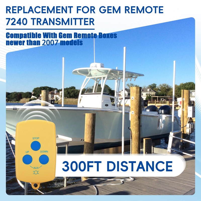• 【Wireless Boat Lift Control for GEM Remote boxes】Perectly replacement for GEM remote allows you to easily control the boat lift from a distance. Compatible with all Gem Remote boxes newer than 2007 models
