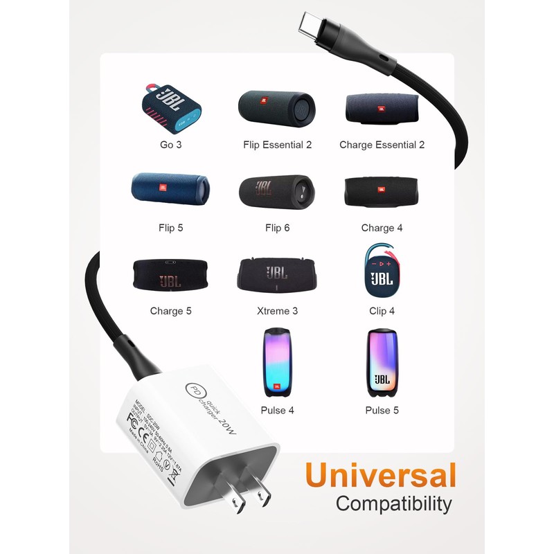 Replacement for JBL Flip 5 Charger Cord Wireless Bluetooth Speakers(3.3FT Cable Included)