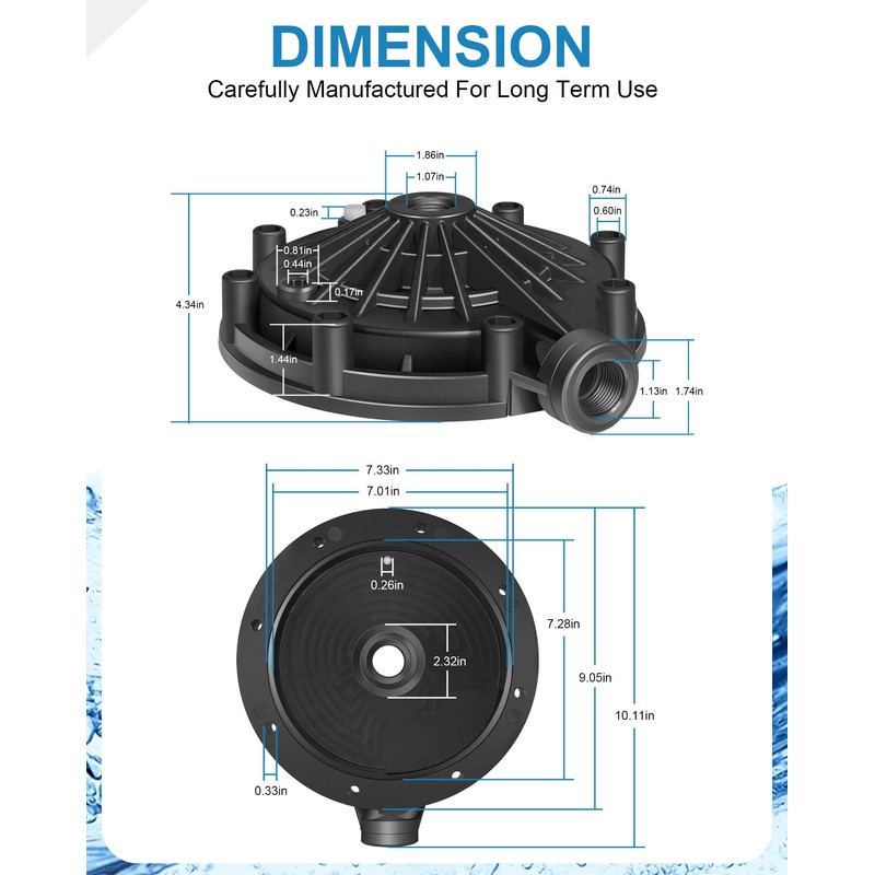 - 【Feature】Direct replacement for the old or broken part. Simply replace the volute to stop leaking. This kit comes with drain plug. The inlet and outlet ports are 3/4-Inch NPT.
