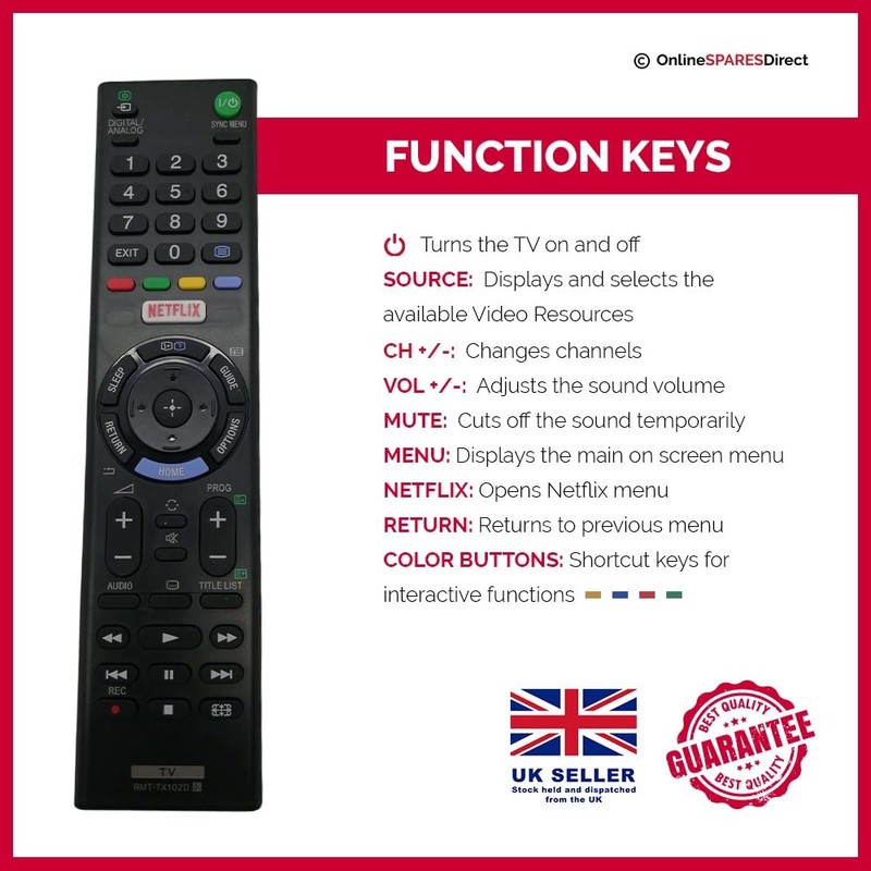 - RMT-TX102D Replacement Remote Control For SONY KDL-32R413B KDL-32R433B KDL-40R453B