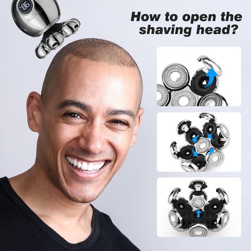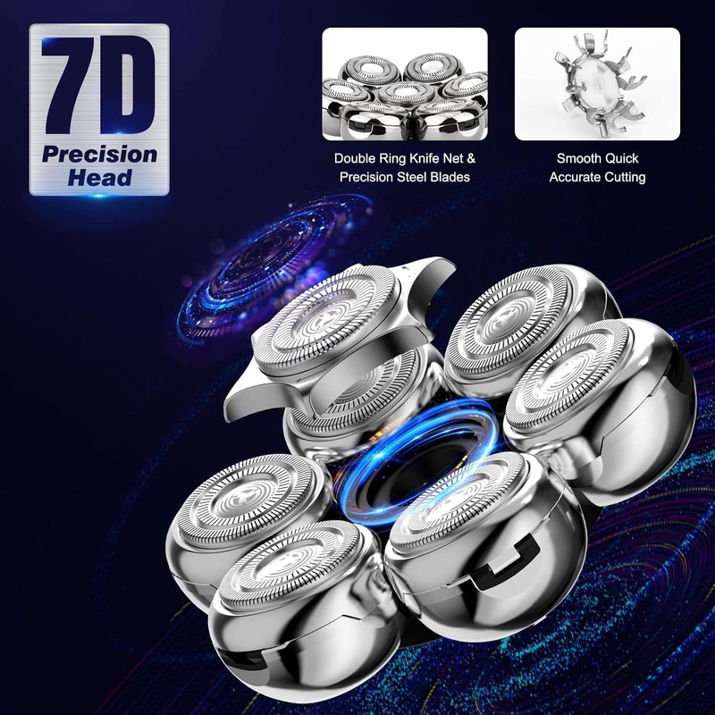 • Excellent 7D Shave Heads - Larger contact surface, and faster shaving, combined with head shavers for bald men bring you a faster and cleaner shaving process. The smooth head reduces irritation and gives you an efficient and comfortable shave.