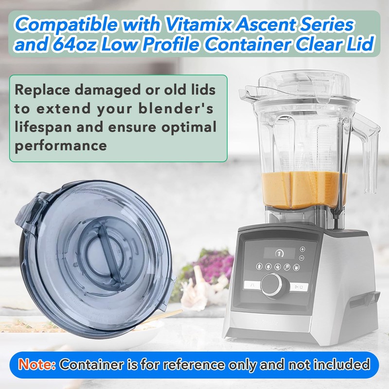 Replacement Lid Compatible with Vitamix Accessories, Designed for Vitamix Ascent Series (A3500, A3300, A2500, V1200 Venturist Pro Pitchers), 64oz Low Profile Container Clear Lid