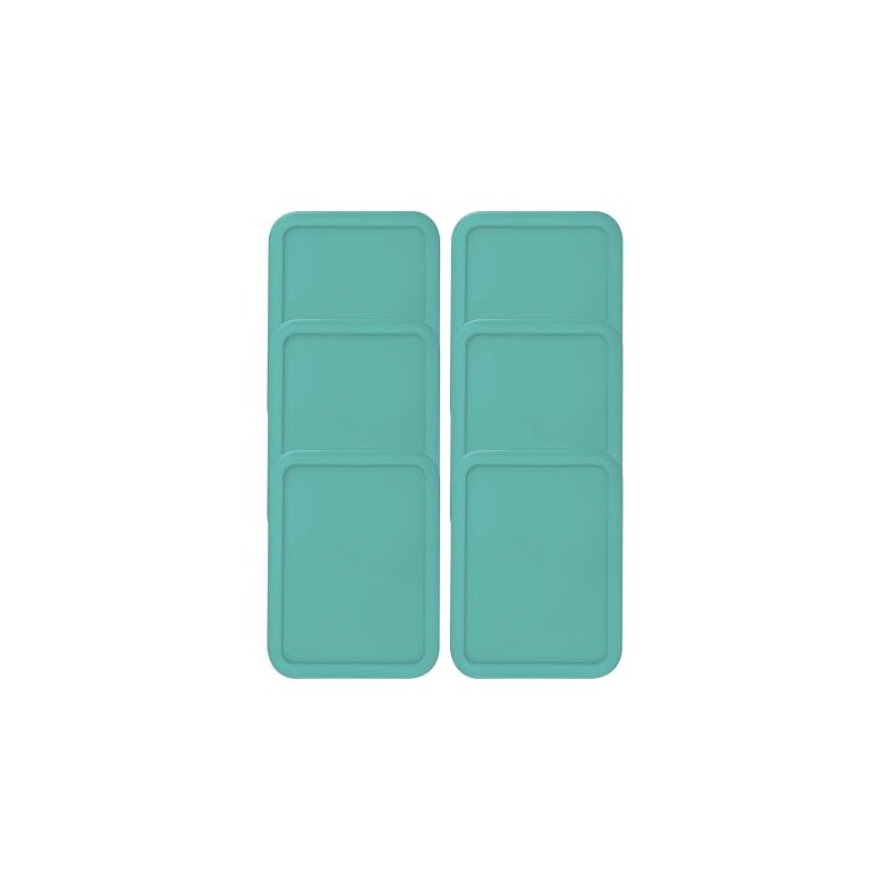 - SET INCLUDES: 5.75" x 7.75" lid for 7210-PC / fits 3-Cup Rectangular Pyrex Glass Containers with "7210" stamped on the bottom / Turquoise / 6-Pack