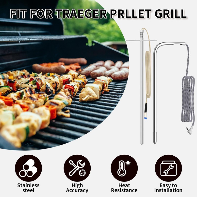 - Meat Thermometer Probe Replacement Kit: Traeger Grill Replacement Parts Kit includes 2pcs meat temperature probe and RTD temperature sensor