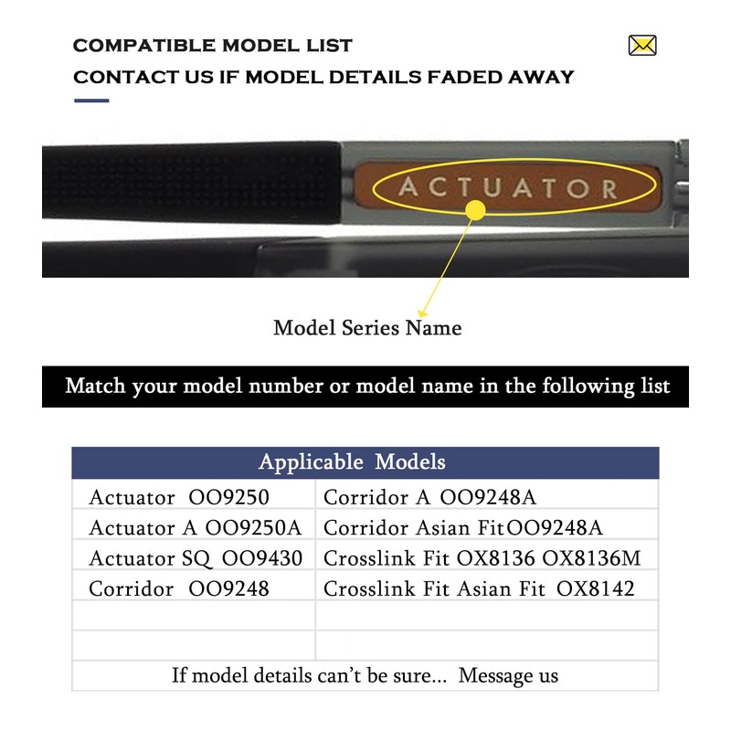 - Easy Installation - No tool needed, just match the model name or model number on the legs of your sunglasses with our compatible model list is enough.