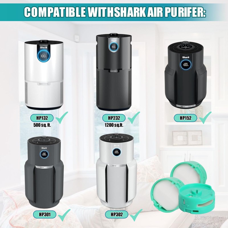 - Compatible for Air Purifier: Shark HP100、HP100C、HP102、HP102C、HP105、HP130、HP132、HP150、HP151、HP152、HP152C、HP155、HP200、HP200C、HP201、HP202、HP202C、HP231、HP300、 HP305、HP072、HP072QGD、HP072QGN、HE400、HE401、HE401C、HE402、HE402C、HE405、 HE601、HE601C、HE602、HE602C、HE612、UA415、UA075、UA155、UA305、UA232、UA205