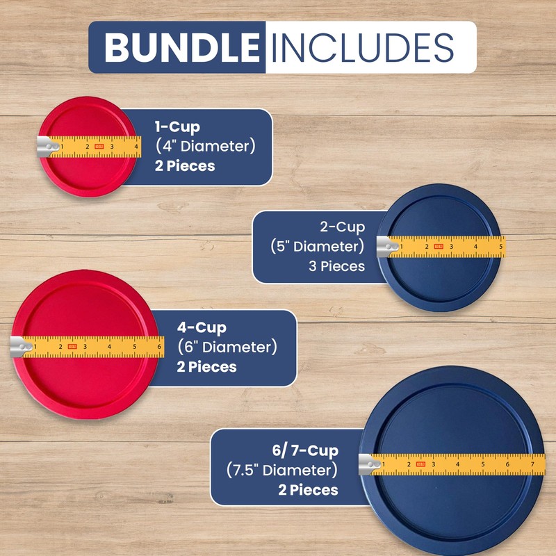 Replacement Lids for Pyrex Glass Food Storage Containers Round (2) 7202-PC 1 Cup (3) 7200-PC 2 Cup (2) 7201-PC 4 Cup (2) 7402-PC 6/7 Cup Red Blue