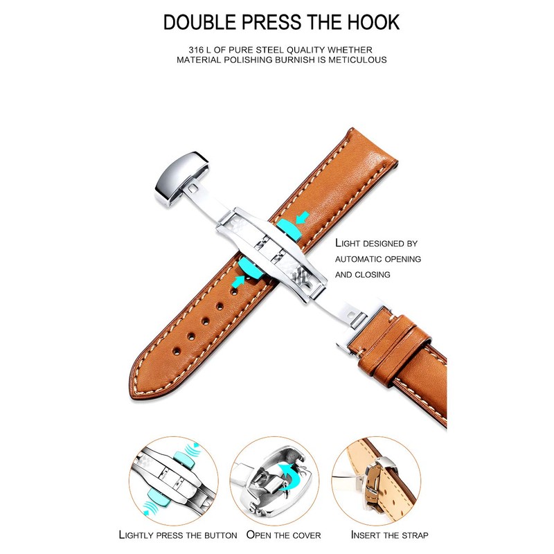 - 316L stainless steel butterfly insert watch clasp buckle for leather strap (not suitable for metal band)