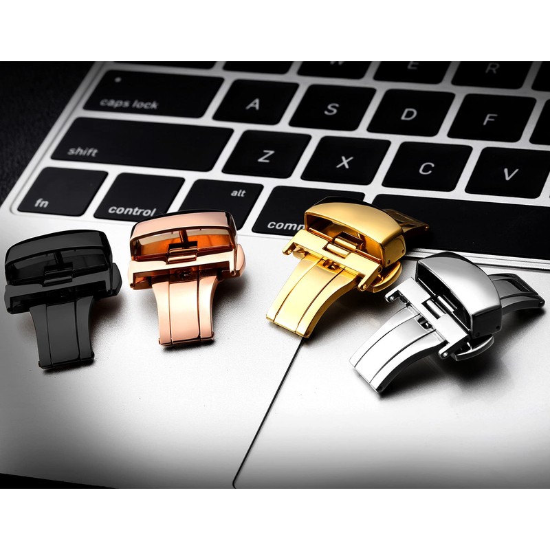 Replacement Push Button Butterfly Deployment Clasp with Buckle for Leather Watch Bands Straps in Gold,Rose Gold, Silver(12mm,14mm,16mm,18mm,20mm,22mm)