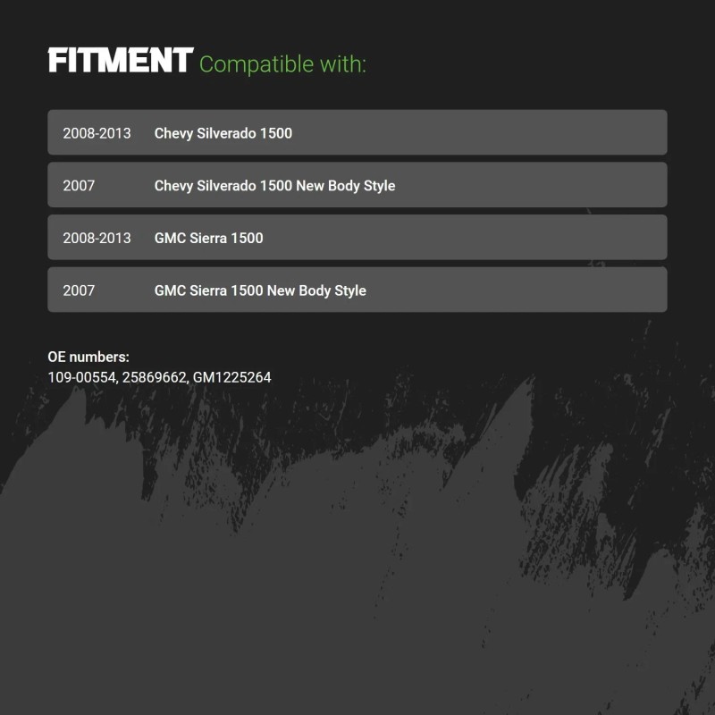 • Compatible Model(s): Silverado 1500, Sierra 1500, Sierra