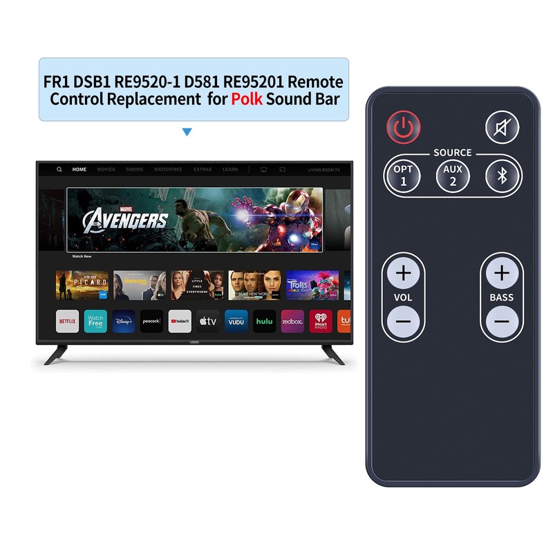 Replacement Remote Control Compatible with Polk Audio Sound Bar Speaker System FR1 DSB1 D581 RE95201 RE9520-1