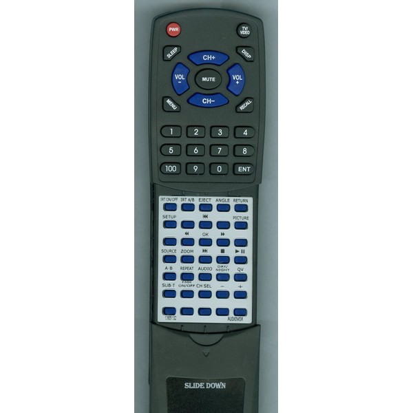 This is a custom built replacement remote made by Redi Remote for the AUDIOVOX remote control number 1365132. *This is NOT an original remote control. It is a custom replacement remote made by Redi-Remote* This remote control is specifically designed to be compatible with the following models of AUDIOVOX units: AVXMTG10U, AVXMTG10O, 1365132 *If you have any concerns with the remote after purchase, please contact me directly* There is a cover over the lower half of the remote. This will slide down to reveal the lower half buttons.