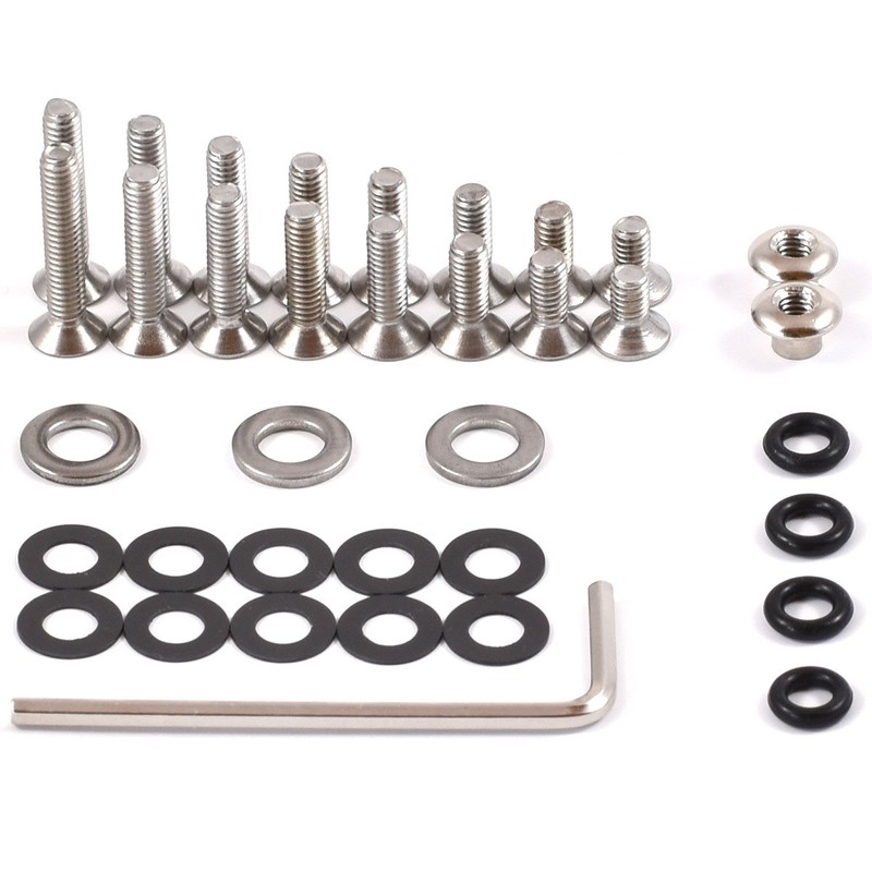 - ✅ Shipping Content: 2 screw nuts, 16 screws (2 x 8, 2 x 10, 2 x 12, 2 x 14, 2 x 16, 2 x 18, 2 x 20, 2 x 22 mm), 10 vinyl washers, 3 steal washers, 1 allen key, 4 rubber o-rings.