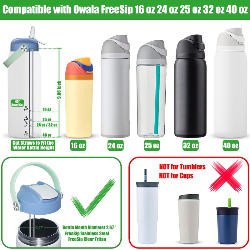 • ✔Safer & BPA Free: Made for Owala FreeSip water bottle, all materials are BPA-free, providing a healthy way to drink water. Includes 1 blue lid, 1 cleaning brush, and 2 cut-to-fit straws for any height bottle.