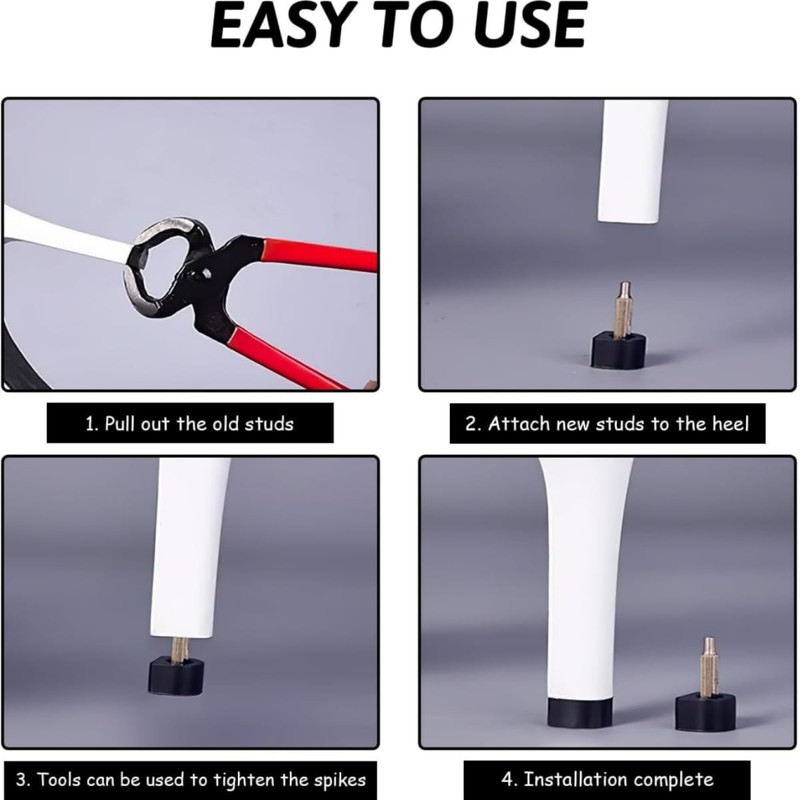 - Easy to Use Our heel repair kit is simple and easy to use when you replace the caps on your high heels and stilettos. First, use pliers to remove the old frayed tip from the sole. Then choose the right size for your heel and insert the new cap flush with the bottom of the heel. This shoe repair kit is a must have for every shoemaker and shoe lover