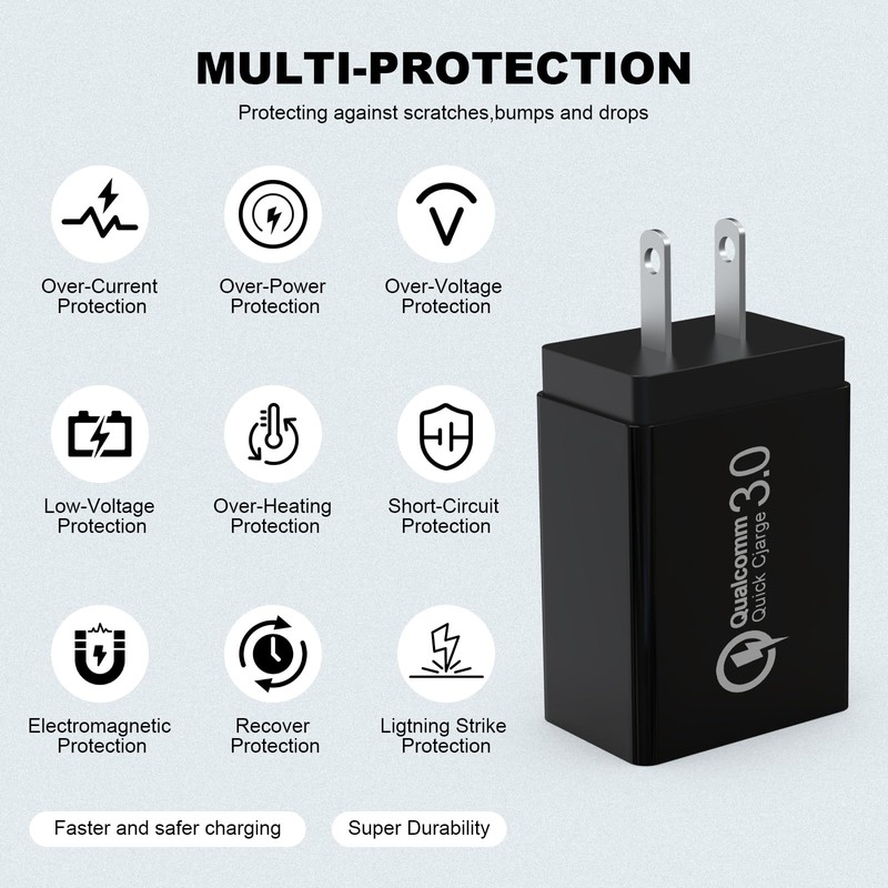 - Super-Fast Charging with Qualcomm Quick Charge 3.0: Equipped with Qualcomm Quick Charge 3.0 technology, this charger charges your compatible devices up to 75% faster than traditional chargers, saving you time and keeping you connected