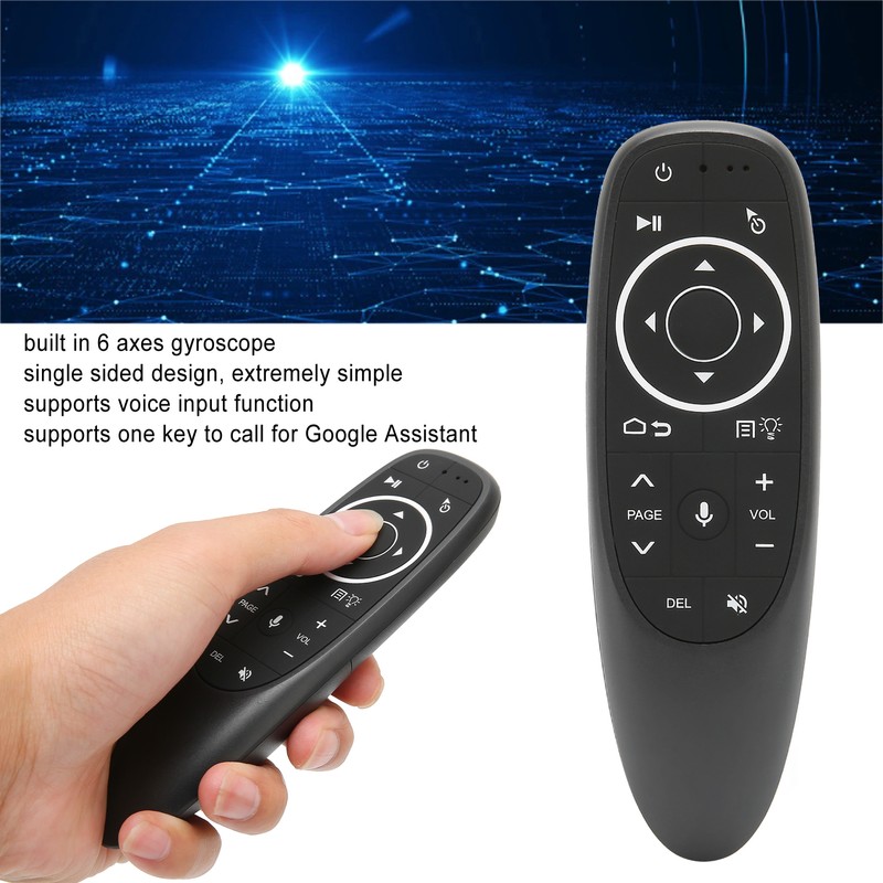 1、6 Axes Gyroscope: The voice remote control has a built in 6 axes gyroscope with stable performance. 2、Simple Design: The remote control has a single sided design, which is extremely simple and does not include batteries. 3、Voice Function: The remote control supports voice input function, and supports one key to call for Google Assistant. 4、Infrared Learning: Infrared Remote Control supports infrared learning, and the remote control distance is greater than 10m. 5、Shell Material: The shell of the replacement remote control is made of ABS material, which is sturdy, stable and very durable.