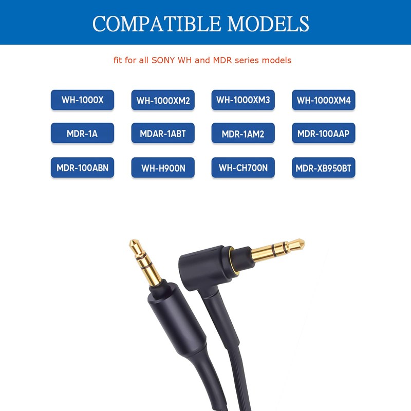 Replacement WH-1000XM5 Headphone Cable Audio Cord Compatible with Sony MDR-XB950BT MDR-1000X WH-1000XM2 WH-1000XM3 WH-1000XM4 WH-CH700N MDR-100ABN MDR-1A MDR-1ADAC MDR-XB950N1 Wireless Headphones