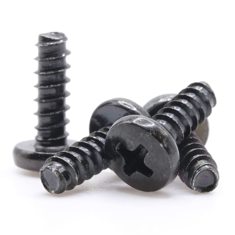 A complete set of TV stand replacement screws for your Insignia NS-24F201NA23. One set of metric screws, four screws in total. Four black self-tapping screws.