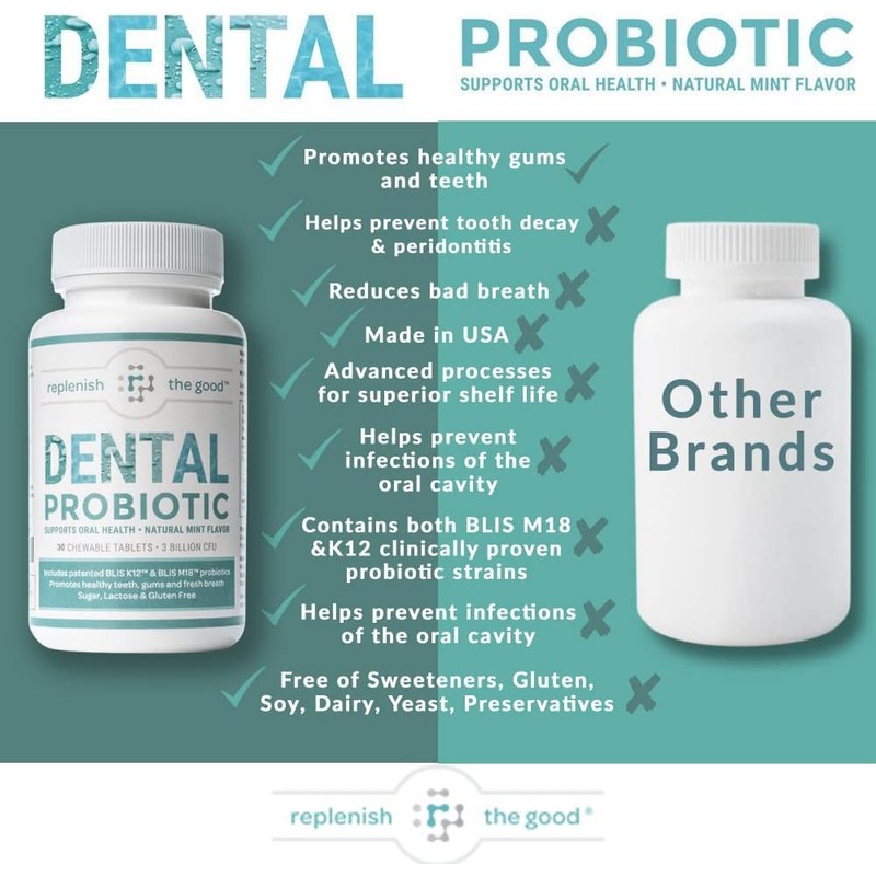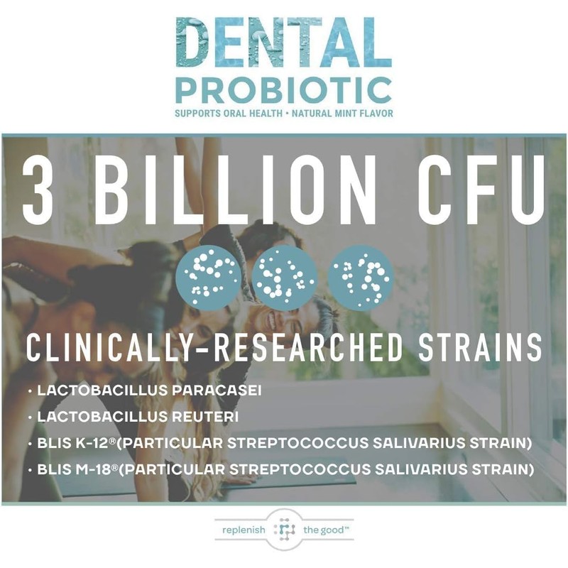 Replenish the Good Dental Probiotic, 30 Sugar Free Chewable Tablets, Mint Flavor - Vegan Supplements w/BLIS K12 & M18 - Boosts Oral Health - Fights Bad Breath (Halitosis), Tooth Decay, Strep Throat
