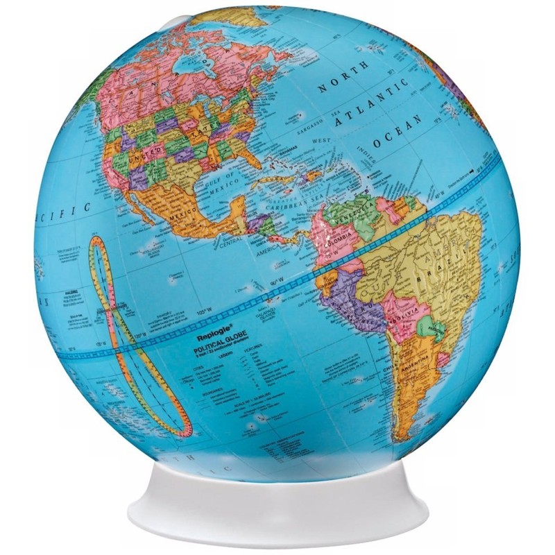 The Apollo desktop Globe features a 9" blue ocean Globe with political map stylings. Easily to pick up and view all areas. Sits atop a plastic stand with clearview mount. Overall size is approximately 9"W x 9"D x 12"H.