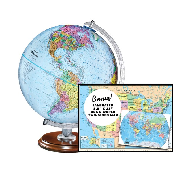 Replogle Student - Educational Classic World globe, Blue Ocean, Raised Relief feature, including a bonus map, made in USA, 12"/30cm diameter