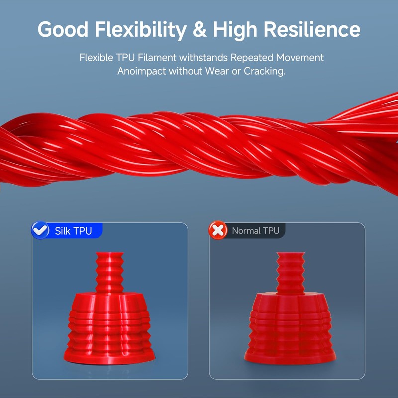 - 【Shine Silk TPU Filament】Our Silk TPU filament has a silky and smooth surface, with a silk effect without polishing, making your 3D printing more attractive and unique. Suitable for flexible applications, ideal for fashion items such as handbags, coin purses, etc