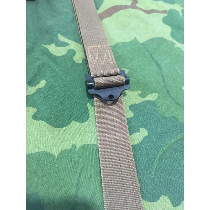 This is a Reproduction of M1967 2 quart 1" nylon canteen strap. This is made out of original strapping from the mid to late 1960s and uses original military hardware.